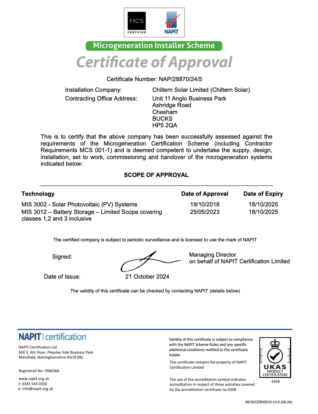 Chiltern Solar Limited | Company number: 07642657 | 9 Worton Park, Witney, England, OX29 4SX | VAT: 115382041
